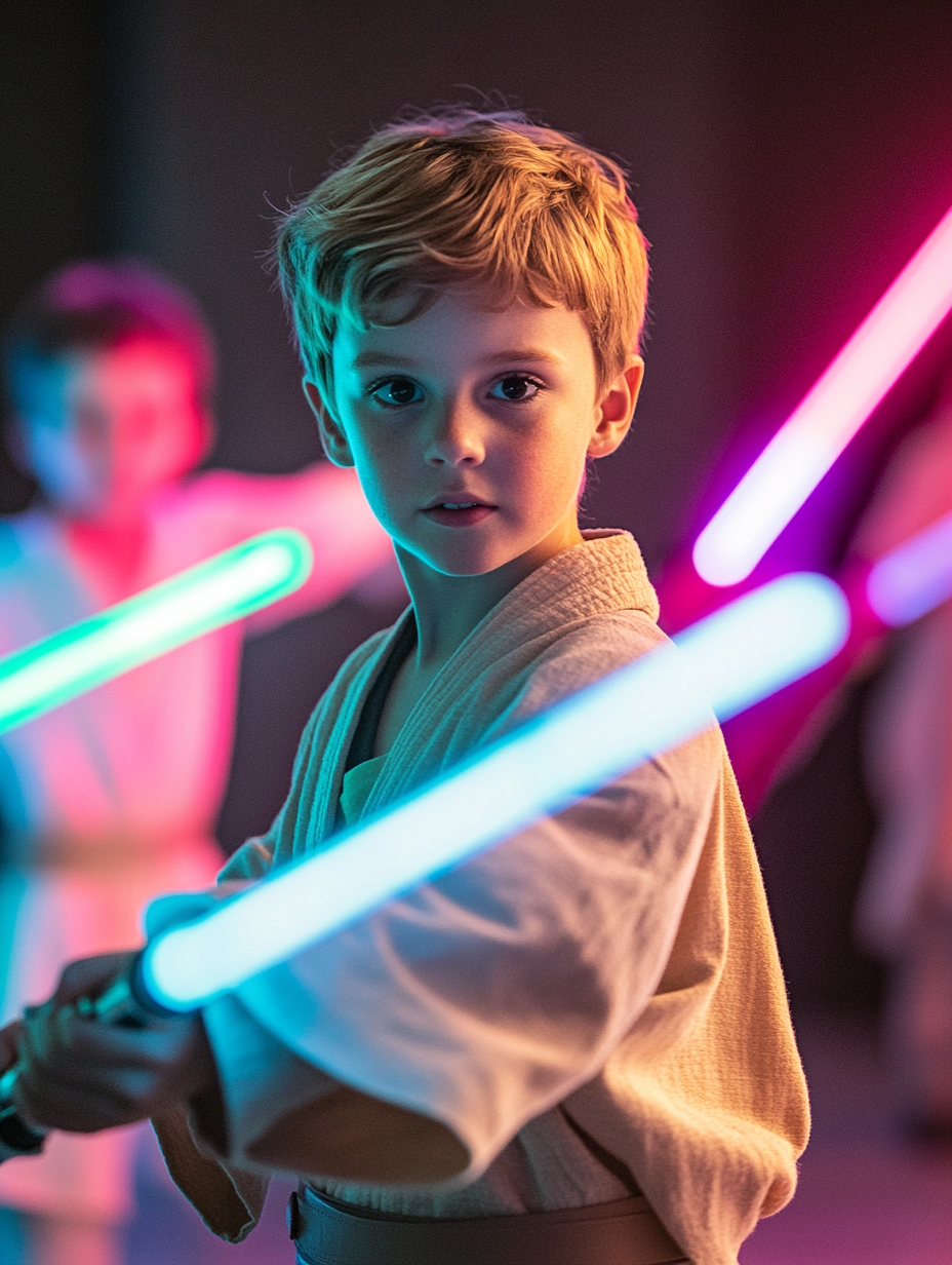 In this activity, kids learn to wield "lightsabers" (foam noodles) while practicing Jedi moves that enhance balance, agility, and coordination. They navigate obstacle courses using their imagination to "use the Force" for tasks like dodging lasers and climbing through tunnels. The session also includes "Jedi meditation," teaching mindfulness and calming breathing techniques to improve focus.