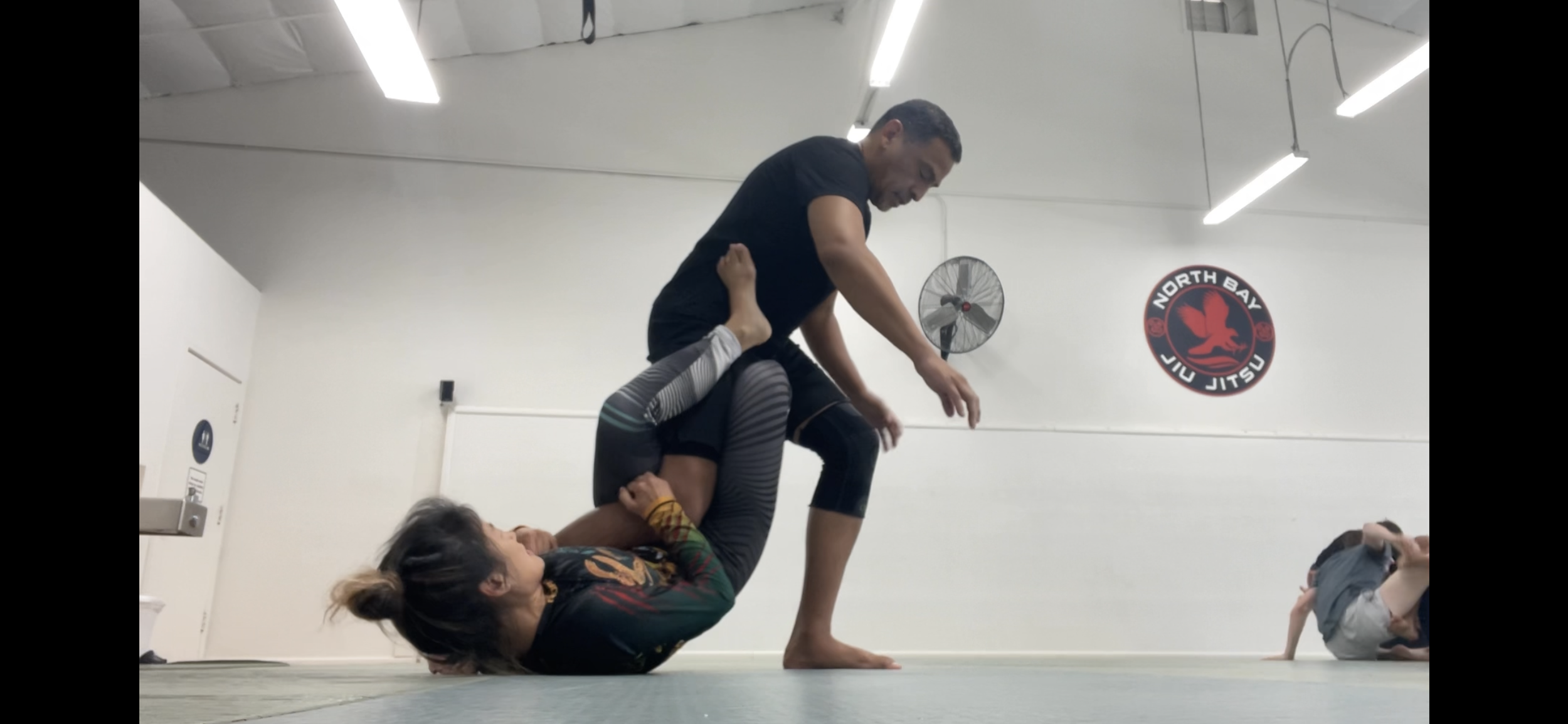 Slide-in entry to the back, and shin-to-shin single-leg X sweep position techniques from NorthBay Jiujitsu No Gi class (9 a.m.) by Paulo Silva.